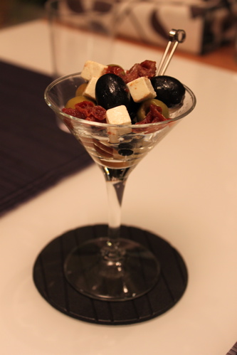 グリーンオリーブ、ブラックオリーブ、ドライトマト、クリームチーズをあえただけですが、美味しいです!シャンパンやワインにあうけど、意外と日本酒にもよさそうだと思いました。