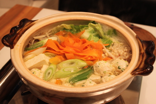 4)沸騰したら火を弱めて、鶏だんごに火が通ったらできあがり♪お好みでかんずりや柚子胡椒をつけていただきます。