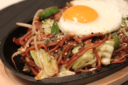 付属のソースを加えてよく混ぜ合わせ、熱くした鉄板に盛りつけます。