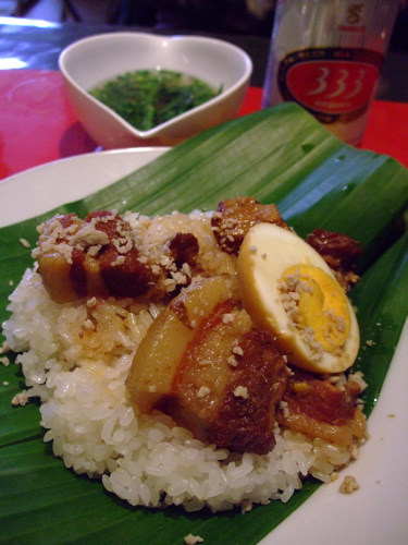 豚角煮と煮卵のせおこわ。