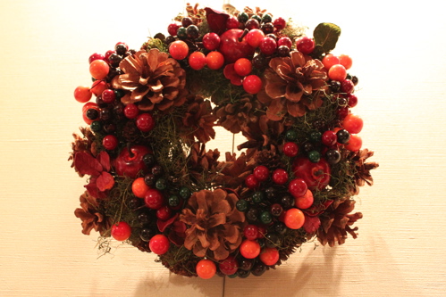 こんなクリスマスリースを飾ってゲストをお迎えしようと思っています。