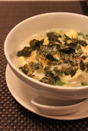 雑炊を食べる時にはっと思いついてのりをちぎって入れてみました。海苔の香りが雑炊にはよく合いますね。海の恵みたっぷりの雑炊、おいしくいただきました♪