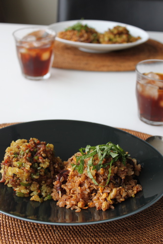 休日のランチです。ちょうどご飯が2膳分残っていたので、チャーハンにしたのですが、材料がどれも少なかったので、2種類作って盛り合わせにしました。パスタは聞くけど、チャーハンの盛り合わせってあまり聞かないですね(笑)