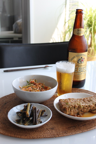 彼がおつまみを作ってくれたのでラーメンを食べる前に少しビールをいただきました。