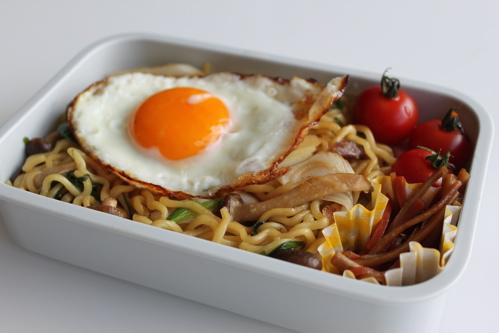 ある日、(なぜかわが家の冷凍庫にあった)冷凍焼うどんを処理するためにお弁当にしてみたところ、これがなかなか美味しくて、しかも簡単で。こういう日は麺類のお弁当にしよう、と思いました。