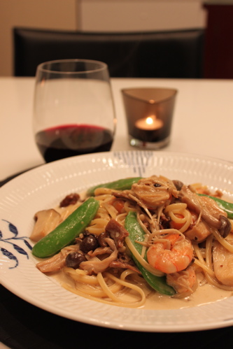 1人の夜もこのパスタと赤ワインで美味しい夜になりました。