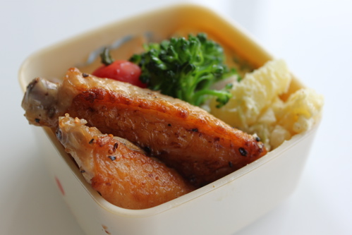 オリーブオイル、ペッパーソルト、レモン汁にマリネした二つ割りの手羽中をフライパンで焼き目をつけて、蓋をして弱火で蒸し焼きに。最後は強火で表面をカリッと焼いてできあがり♪