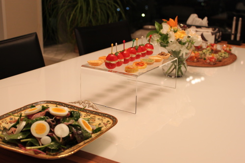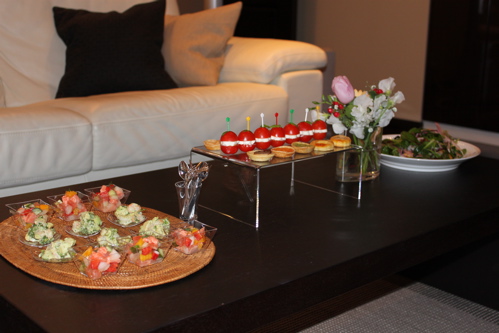どんな風におもてなししようか迷いましたが、最初はシャンパンで乾杯したかったので、それにあわせてオードブルを用意しました。(今回のオードブルの一部は、いつもおしゃれなお料理やテーブルコーディネートを紹介されているhappyさんのレシピを参考にさせていただきました。)