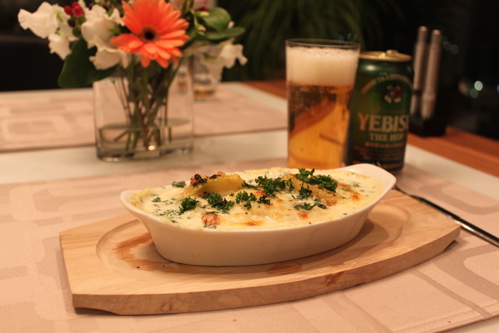 ホワイトソースのグラタンもおいしいですが、生クリームのグラタンもいいですね〜。