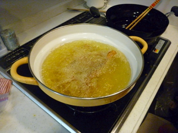 このお料理で有名なお店で以前店長をされていた方が今回のゲストの中にいたので、お願いしてわが家で揚げてもらいました。