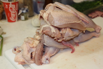 彼は首を落とした鶏を2匹持ってわが家にいらっしゃいました。