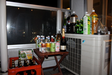 飲み物は冷蔵庫には入りきらないことがわかっていたので、天然冷蔵庫のバルコニーに。この頃ちょうど新潟は寒くて(今日はたくさん雪が積もってます!)、日中でも気温は低く夜になれば1℃2℃でしたから、冷蔵庫よりよく冷えるのです。電気代はかからないし、冷蔵庫もそのぶん他のものをいれられるし、冷蔵効率もよくなるしで一石三鳥くらいのメリットがありました。