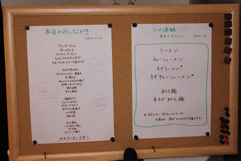 とにかくゲストに楽しんでもらいたいので、お部屋をキレイにしたり、お花を飾ったりはもちろんのこと、時間がなくてあきらめかけていた居酒屋oliveお約束のメニューボードもギリギリなんとか用意しました。これを見てみんな「こんなのあるの?!」と喜んでくれたので、やっぱりがんばって書いてよかったです。(といっても時間がなかったのでぶっつけ本番で書いたんですけどね^^;)