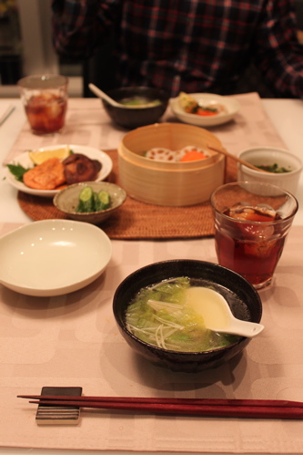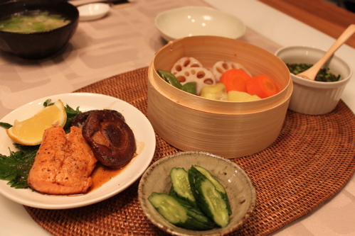 野菜って蒸すと味が凝縮するんですね。にんじんがとっても甘く、れんこんは歯ごたえを残したいい食感で、どれも美味しくいただきました。最近タジン鍋が流行っていますが、蒸してこれだけ美味しくなるのならうちも買ってみようかしらと思ってしまうほどでした。