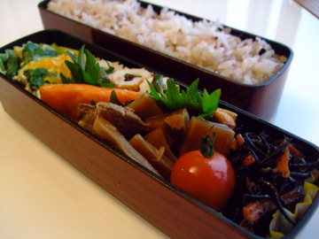 お弁当のメインのおかず。気がつけば揚げ物が多くなっていましたので、たまにはあっさりと和風弁当にしました。よってごはんも十六雑穀米です。
