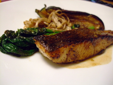 生わさびがアクセントになったお醤油ベースのソースは、淡白なスズキにぴったり。