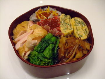 なばなはちょうど家にあったので彩りに入れましたが、ほろにがい味でおいしくいただきました。
