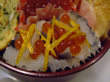 新潟のお正月といえば鮭。お雑煮にももちろん鮭が入りますが、この氷頭なますは鮭の頭の部分が入った酢の物です。氷頭(私は甘酢漬けになっているものを買いました)と大根おろしを混ぜ合わせ、砂糖と酢をまぜたもので味付け、最後にゆずといくらをのせて完成です。