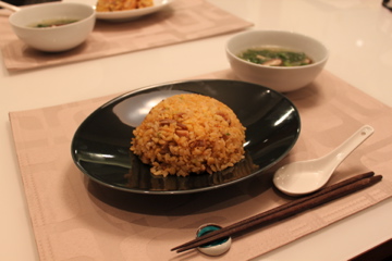 年末に届いた食材とお正月用に作ったお料理などでしばらく冷蔵庫がいっぱいになっていました。お正月以降少しお料理から遠ざかっていたのですが、さすがに残り物を食べてしまわなければならないので夕食にアレンジしてみました。といってもダイエットを今年の抱負に掲げた彼がいますから、品数は少なめに。献立はシンプルに炒飯とスープにしました。