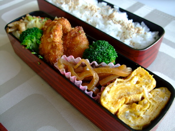 少し前のことですが「牡蠣がおいしくなってきたから」と義母が衣をつけるところまで作ってくれたカキフライをお弁当にしました。