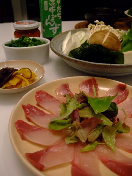 ダイエット中のわが家の夕食は「野菜中心」が原則。そんなわけでお鍋率が上昇しているわけですが、先日の牛のしゃぶしゃぶに続いて今回はぶりのしゃぶしゃぶにしてみました。