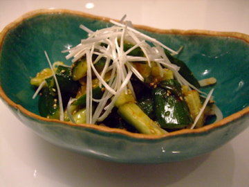 生にんにくを使って、きゅうりともやしのにんにく辛みあえを作りました。