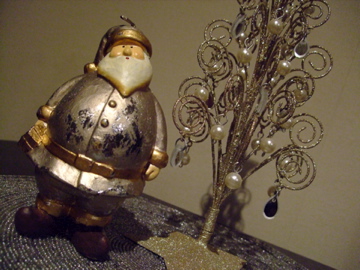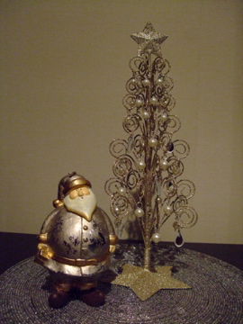 ゴールドのツリーはキラキラ光る飾りがついています。となりのサンタさんはキャンドルです。ゴールドのツリーだけではさみしいので、何か一緒に飾るものはないかなと探していたら偶然見つけました。