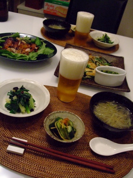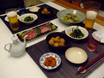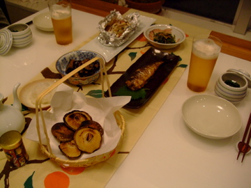 この日は温かいおつまみが多かったせいか、てぬぐいの柄のせいか、なんとなく温かな感じの食卓になりました。温かいものが美味しい季節になりましたね。そろそろお鍋もいいかも。