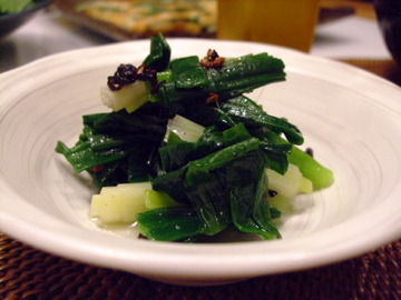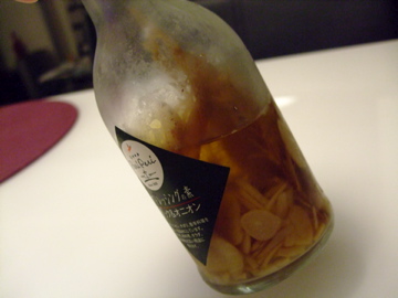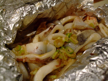 新鮮なイカを買ってきて、足は2本ずつに、胴体は1cm幅くらいに切って、イカのわた、酒、しょうゆ、ねぎのみじんぎり、しょうが汁とよく混ぜ、ホイルに包んで200℃のオーブンで10分焼きました。イカが新鮮なので半生くらいが美味しいです。これ作ると必ず日本酒を飲みたくなります。この日も飲みました。