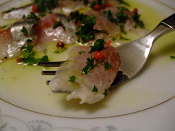 とても小さな鰺だったので、これはメインというより前菜に近いかな。この日はメインはパスタなんです。