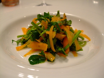 にんじんのオレンジとクレソンの濃いグリーンが鮮やかなこのサラダ、大人のパーティレシピにはぴったりではないでしょうか。