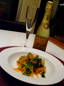 キリリとした辛口のスパークリングワイン、フレシネネグロはお値段も手頃で美味しくてもともと好きな銘柄でしたので、美味しくいただきました♪
