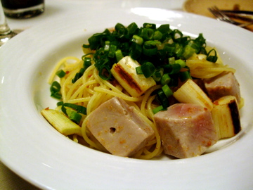 ねぎまのスパゲッティ。いつもながら落合務さんのレシピです。