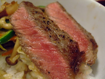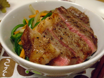 ステーキ丼はサーロイン牛1枚を使って2人前作りました。