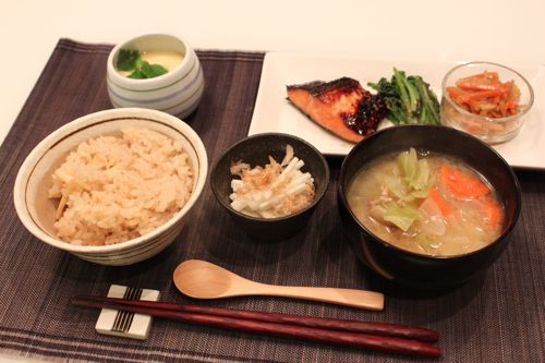 他には久しぶりに作った茶碗蒸し、鮭の味噌漬け、ほうれん草のごま和え、切り干し大根の煮物、長芋千切りそそれぞれ少しずつ用意しました。