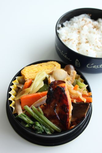 鮭の味噌漬けをメインにしたお弁当です。