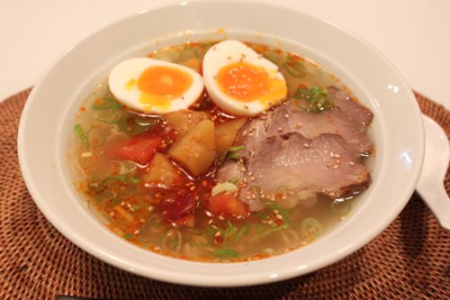 久しぶりに彼の自作ラーメンです。