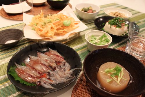 せっかくなので、ほたるいかのお刺身をメインにしたおうち居酒屋を開店しました。
