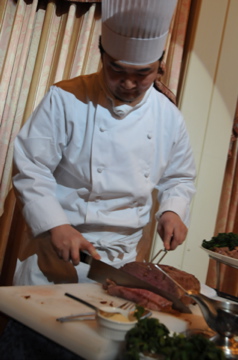 シェフもふだんはしないパフォーマンス(お料理の説明やローストビーフのカービングサービス)をしてくれました。当日は私はほとんど食べられませんでしたが、ゲストの方からは概ね好評だったみたいなのでほっとしています。