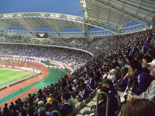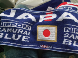 ゴール裏のサムライブルーシートには試合の間中立って声を出して応援するサポーター達が集まっていて、大きな旗を振ったりしていました。これがよくテレビに映る人たちなんだということがわかりました。