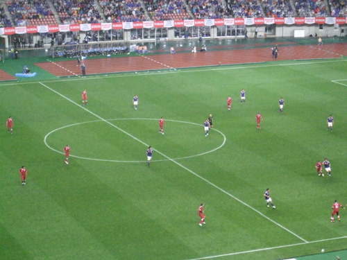 19時20分からの代表戦の前に、16時20分からU-22の対オーストラリア戦があり、私達がスタジアムに入場した時ちょうどU-22の試合開始のホイッスルが鳴りました。
