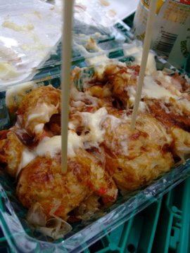 神社にはたくさんの屋台が出ていたので、それぞれ少しずつ買って来ました。