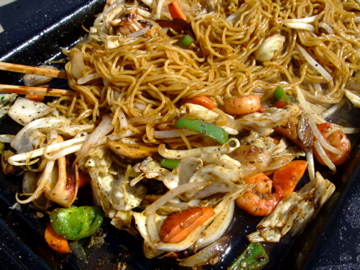 野菜と魚介(イカ、えび)をたっぷり入れたソース焼きそばはおたふくの焼きそばソースを使って作りました。