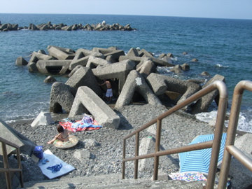 猫の額ほどの小さなスペースに地元の方と思われる海水浴客が数組いるだけの小さな小さな海水浴場でした。