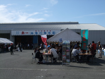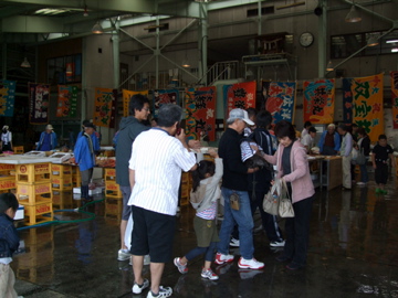 奥に魚売り場、手前はテントが立っていて焼きそばやビールの屋台もでていました。