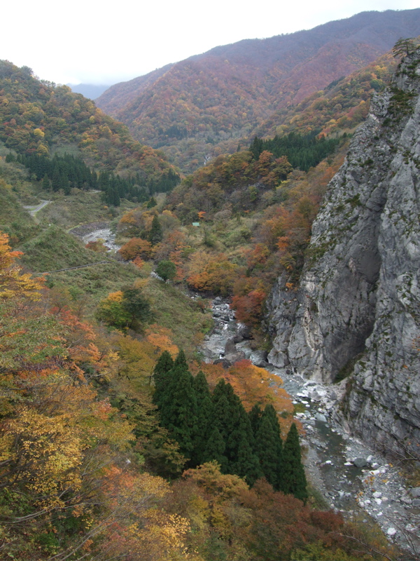 土曜日はあいにくの曇り空でしたが、ちょうど見頃を迎えたという小滝ヒスイ峡に紅葉を観に行ってきました。