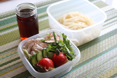 この日はお弁当の新ジャンルに挑戦。サラダうどんです。