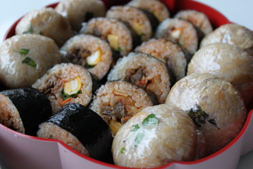 ごはんものは筍ごはんのおにぎりとキムパム(韓国風海苔巻き)です。