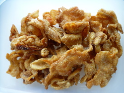 彼の鶏皮せんべいはじっくり弱火でじーっと焼いて、大量に出た鶏油はラーメンに使うんですよ。