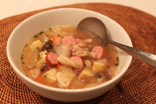 スープにはベーコンを入れることが多いんですけど、この日はソーセージにしてみました。